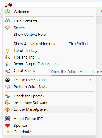 Eclipse의 Help > Elcipose Marketplace... 클릭