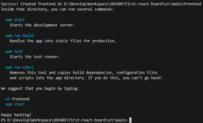 서버 시작후 위와 같이 보이면 Back-End는 우선 성공