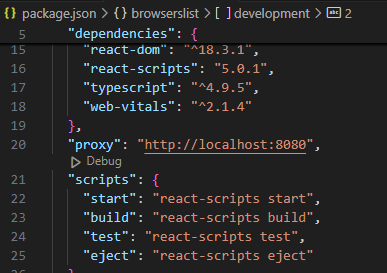 package.json 파일을 변경 하면 frontend 소스에서 http://localhost:8080은 빼고 작성을 하면 된다.