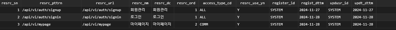 SELECT ACCESS_RESRC_PTTRN RESRC_URL, ROLE_CD, 1 RESRC_ORD, ACCESS_RESRC_ORD